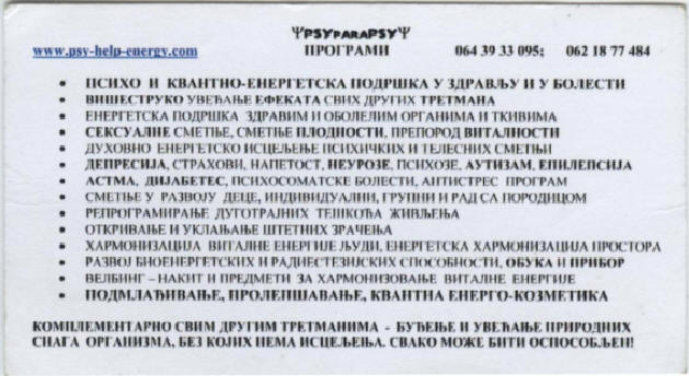Below is a copy of Radovan Karadžić's business card as D. D. David (translation below provided by Voja Antonic):