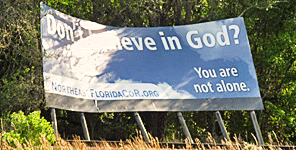 At the top of this column there is a photo of a billboard that has been damaged. Did vandals ram it with a large vehicle? Did the wind bend it? Did God smack it with a tornado to remind atheists that he will not be mocked? Did someone Photoshop the billboard to make it look like somebody vandalized it? A rational person will look for evidence to determine what happened. A clever person won't bother, for even if conclusive evidence is gathered, the clever person knows he can come up with some ad hoc scenario that is compatible with the evidence but which is also harmonious with some other farfetched hypothesis about gods not being mocked.