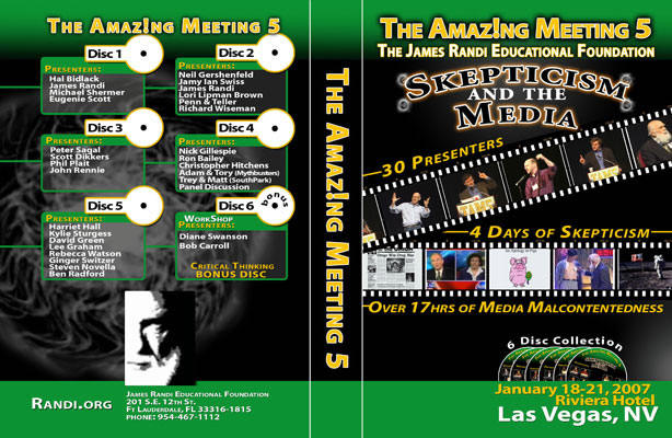 I was surprised to find that the TAM5 6-disc DVD collection includes 2/3rds of the workshop: Diane Swanson's presentation and mine. The DVD can be ordered from the James Randi Educational Foundation. It includes more than 17 hours of material from the likes of Mr. Randi himself, Michael Shermer, Richard Wiseman, Phil Plait, Eugenie Scott, Harriet Hall, Ben Radford, Christopher Hitchins, Peter Sagal, Penn & Teller, Scott Dikkers, Adam Savage, and many more.