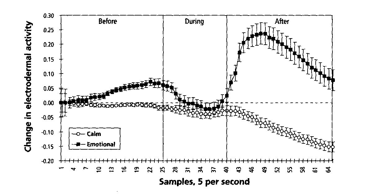 Radin thinks he replicated his presentiment test with an experiment he describes on pages 119 ff. I have two comments. One, the confidence interval for the experiment is 65% (i.e., seven out of 20 chance of it being a fluke). The only other comment I have to make is that where he sees a vast difference between the graph lines measuring the before physiological state (orienting response) for the calm vs. the stimulating picture, I see very little difference. This seems to be a case of pathological science: Seeing something significant in something insignificant. [Click here to see a copy of his graph.]